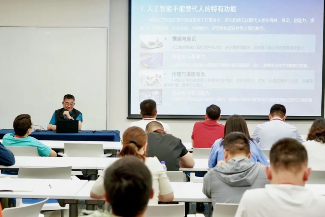 中国警察协会学术委专家委员、江苏苏禾社会治理研究院首席专家张跃进就“人工智能时代的思辨能力、政治素养和履职能力提升”等主题进行深度授课。他强调,保安队伍尤其是保安经理,不仅要积极拥抱人工智能时代,巧用DeepSeek作为辅助日常工作管理的技术工具,也要通过培养“四力”(政治能力、组织领导能力、沟通协调能力、创新发展能力、群众工作能力)来不断增强自身的政治素养与履职能力。
